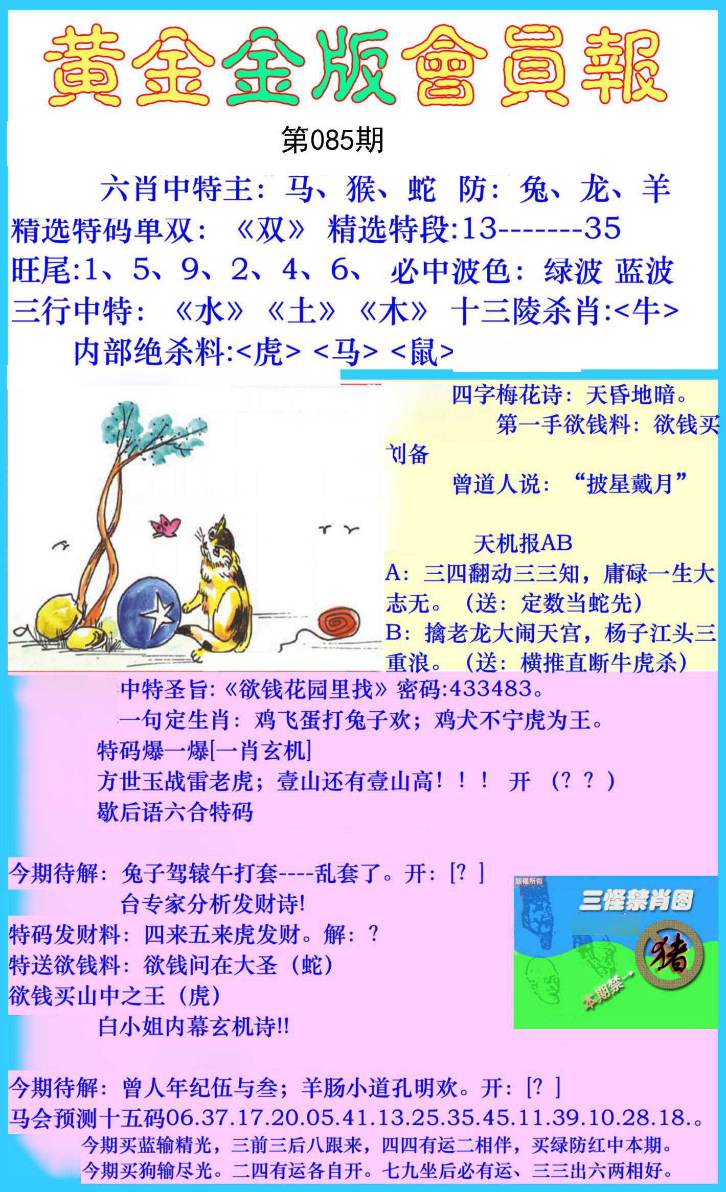 085期金牌③肖【马狗猪】开:0 |