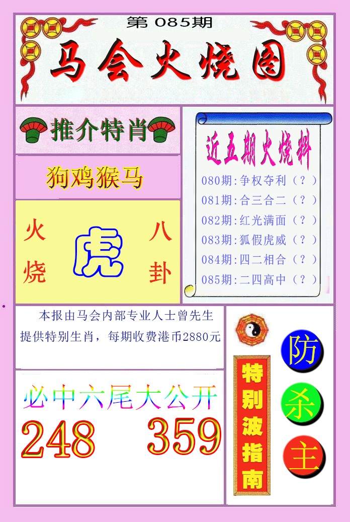 | 085期;绝杀【狗肖】绝杀【2尾】开:?00 |