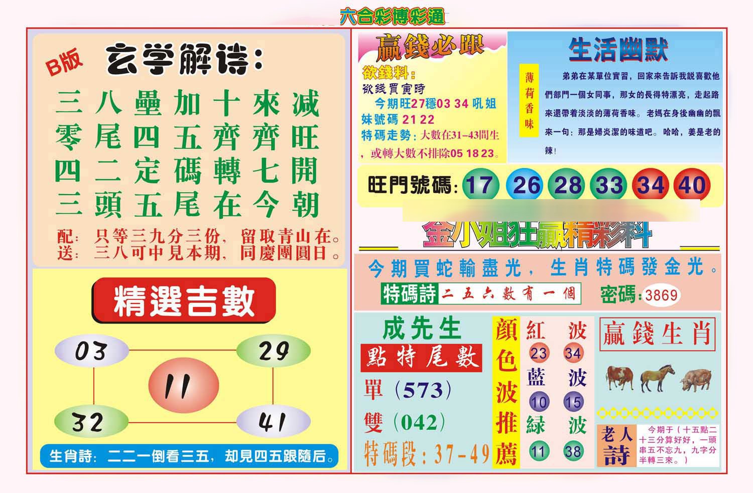 072期开:牛06 今期买蛇龙输尽光, 看中1头3尾全不买 |
