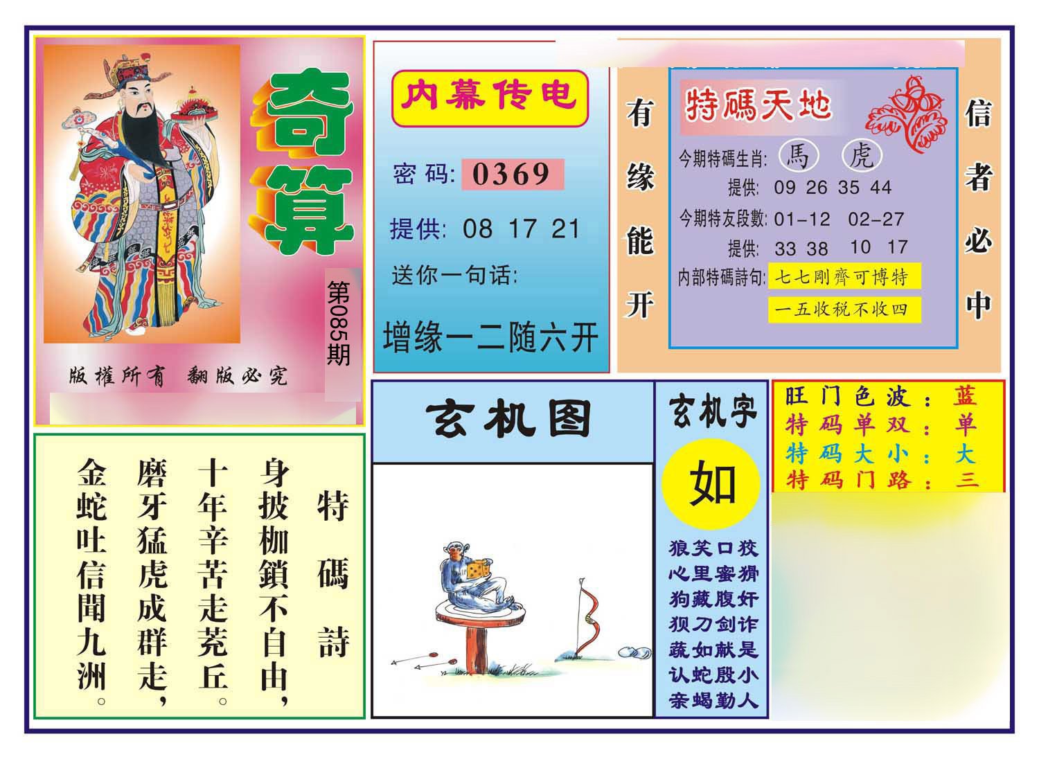 | 085期;家野【家禽家禽】开:?00 |